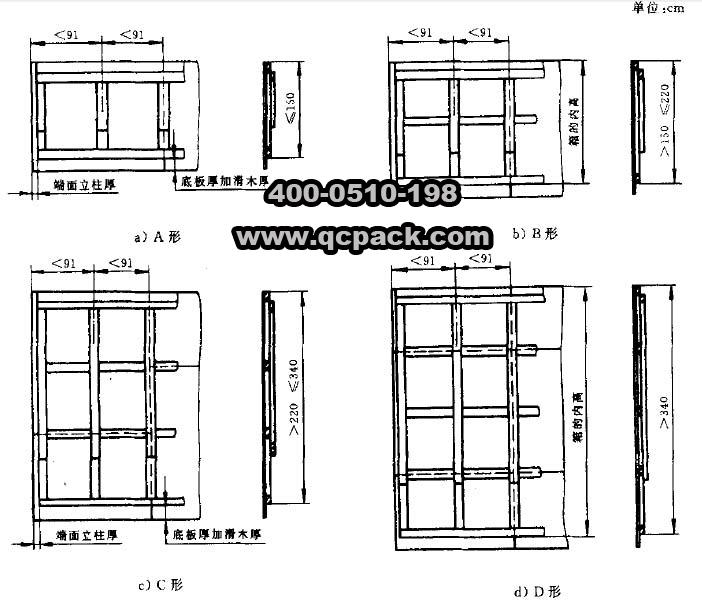 框架木箱的底座也是由滑木、輔助滑木、端木、枕木和底板組成的,其結(jié)構(gòu)與滑木箱基本相同。底座在裝上內(nèi)裝物而未裝側(cè)面和端面時(shí),不能單靠底座進(jìn)行起吊作業(yè),特殊情況需要起吊時(shí),需將底座加固,參照《GB/T 10819-2005 木制底盤(pán)》進(jìn)行。